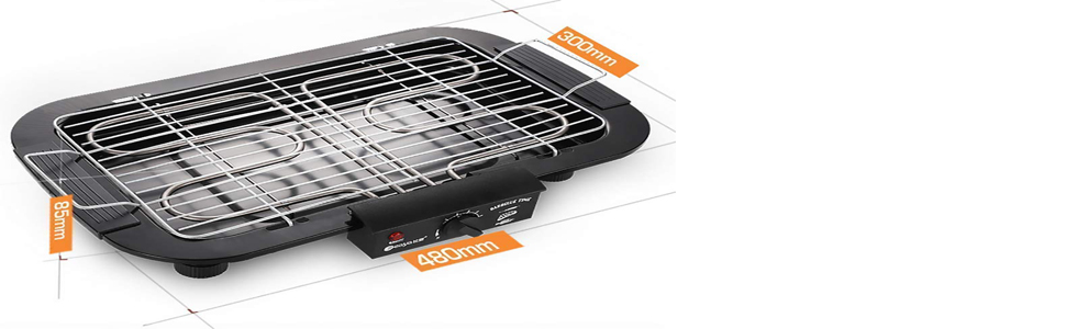 【Demountable Design】The portable indoor/outdoor electric bbq grill can be taken into 4 mian parts. It is convinient for cleaning, for repairing and for assembling.(1. Cooking Grid. 2. Heater Pipe and Controller with wire. 3. Oil-receiving tray 4. Base Plate and Floor Mat. )